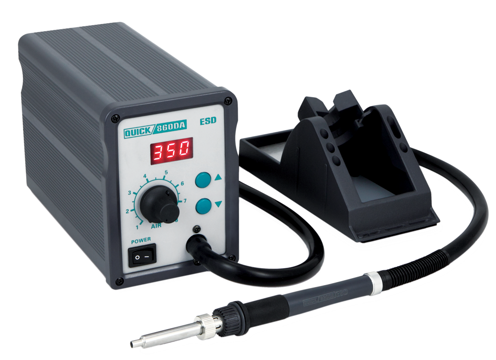 Термовоздушная паяльная станция QUICK 860DA ESD предназначена для для работы в условиях плотного монтажа (в комплекте 6 миниатюрных насадок диаметром от 1.5 мм).